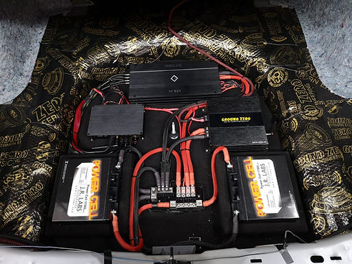 Bei der Verkabelung benutzen wir ausschließlich Kabel made in Germany aus Vollkupfer und ebenfalls Rohrkabelschuhe aus Vollkupfer. Wir fertigen jede Verkabelung individuell für das Fahrzeug und Konzept. Die richtige Absicherung und Dimensionierung der Kabel ist entscheidend für eine problemlose Funktion des Soundsystems. Da wir keine Kompromisse beim Einbau und die dafür verwendeten Materialien eingehen, geben wir Ihnen 5 Jahre Garantie auf die Installation.