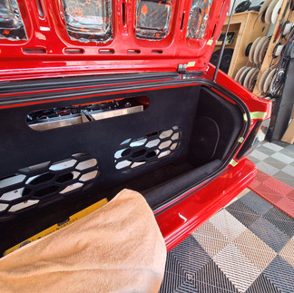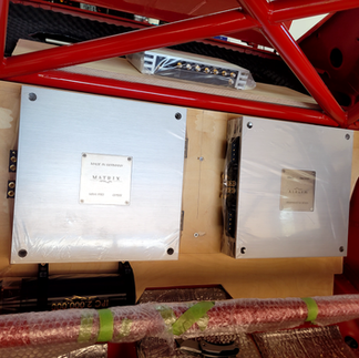 Die Signale für die jeweiligen Lautsprecherkanäle liefert ein Brax DSP. So gut wie alles, was gebraucht wurde um die Musikanlage zu verbauen haben wir in unserer Werkstatt entwickelt und umgesetzt. Sei es der Kofferraumausbau, das Gehäuse für die Subwoofer, die 3-D Druckringe für die Lautsprecher zu befestigen und und und. Viele Teile wurden speziell CNC gefräst und beschichtet bzw. eloxiert. Es war oft ein Kampf und hat sehr viel Nerven gekostet, aber das bisherige Ergebnis spricht für sich. Wenn das Auto fertig ist, wird es einen ausführlichen Bericht und Video geben.